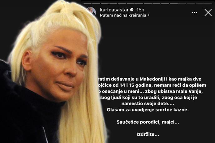 - Pratim dešavanje u Makedoniji i kao majka dve devojčice od 14 i 15 godina, nemam reči da opišem ovo osećanje u meni. Zbog ubistva male Vanje, zbog ljudi koji su to uradili, zbog oca koji je namestio svoje dete... Glasam za uvođenje smrtne kazne - napisala je Jelena Karleuša, a potom uputila reči podrške devojčicinoj mami: