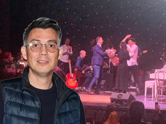 Pevač je prekinuo svoj nastup na nekoliko minuta i pozvao buduću mladu da izađe na scenu. Devojka mu se pridružila na bini, ali nije znala o čemu se radi.