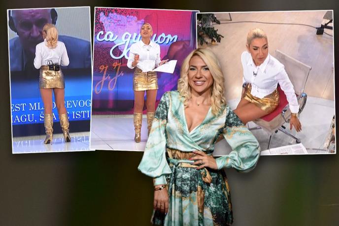 Naime, Jovana, inače voditeljka Jutarnjeg programa Pinka, izaziva pažnju i svojim stajlingom. Obično bi Jeremićka isticala svoj dekolte, a ovag jutra odlučila je da belu košulju zakopča do grla. Sve je samo iznenadlila zlatnom mini suknjom i zlatnim dubokim čizmama do kolena.