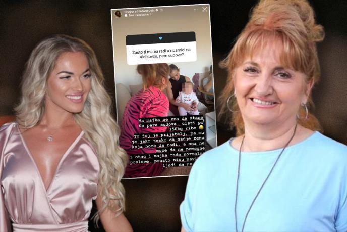 - Zašto ti mama radi u ribarnici na Vidikovcu, pere sudove? - pitao je Teodoru jedan fan, a ona je bez zadrške odgovorila sa sve snimkom na kojem su njena snajka, bratanica i majka.