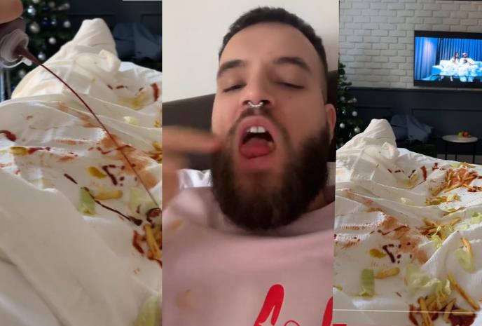 "VEPRINA ALAVA, KRMAK" Nući zgranuo javnost snimkom iz kreveta - jeo sa posteljine i tu se NIJE ZAUSTAVIO