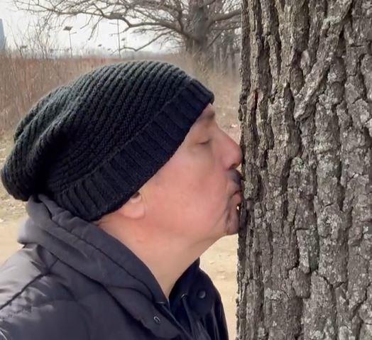 KEBIN URNEBESNI SNIMAK ZAKUCAO DRUŠTVENE MREŽE: Ljubi drvo i spaja se s prirodom: "Brate, brineš me! Zar je dotle došlo?!"