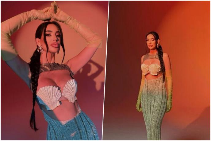Katarina Grujić, jedva je uspela da spakuje svoje bujno poprsje u korset koji je u obliku školjke. Namučila se ona sa svojim peticama, ali i ljudi koji su joj pomagali da se obuče.