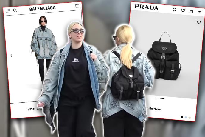 Pevačica je svu pažnju ukrala zanimljivom četiri broja većom "balensijaga" teksas jaknom oversajz kroja sa nitnama od 5.500 evra. Uz nju je nosila i patike iste marke od skoro 900 evra u beloj boji i majicu od čak 600 evra. Na ramenu je okačila "pradin" crni ranac od najlona koji košta 1.800 evra.