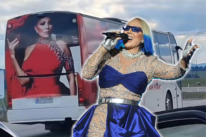 HIT HITOVA! "BRENABUS" GLAVNA ATRAKCIJA NA PUTEVIMA: Brena u stilu svetskih zvezda jezdi drumovima u autobusu sa svojim likom FOTO