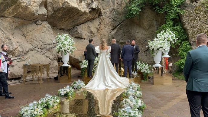 Mladenci su zasenili sve prisutne svojim izgledom, a mlada je na venčanici nosila posebnu simboliku, na šlepu haljine na italijanskom jeziku pisalo je "Volim te", a mladoženja nije krio sreću što je venčanje održano u vreme vaskršnje radosti.