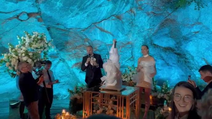 Stigla je i mladenačka torta, a uz neverovatnu atmosferu i odličnu muziku mladoženja je odlučio da se obrati gostima i Kosani.