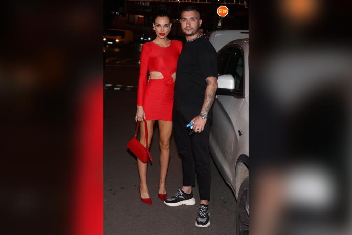 Mirko se odlučio za crnu kombinaciju, dok se lepa Bojana opredelila za crvenu elegantnu usku haljinicu sa prorezima oko stomaka i pokazala brutalno telo i savršen stomak, posle dva porođaja.