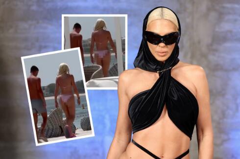 Ekipa Kurira uhvatila ju je kako na plaži šeta u roze kupaćem kostimu, a društvo joj je pravio njen poslovni saradnik, sa kojim je odlučila da provede nekoliko dana odmora.