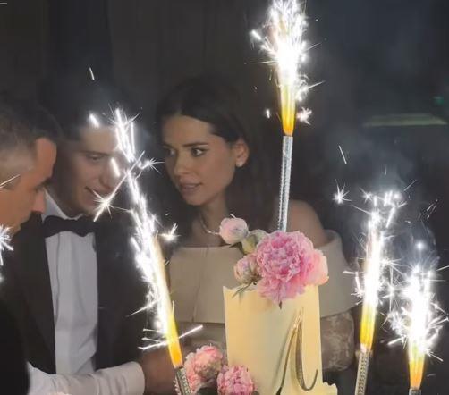 Mladencima je stigla velika bela torta, koju su potom zajedno presekli. Vatromet je prštao na sve strane, a Lav i njegova izabranica nisu skidali osmehe sa lica.