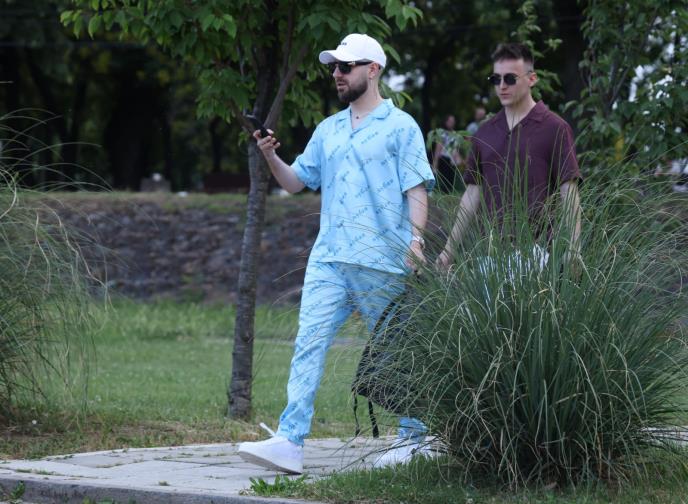 Među prvima se pojavio reper Heni u plavom kompletu na kom piše "Ljubav", koji je ukombinovao sa belim kačketom i crnim naočarima za sunce.