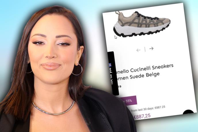 U pitanju je Brunello Cucinelli, luksuzni italijanski brend koji je sinonim za prefinjen dizajn i udobnost, a model koji nosi Aleksandra je u bež boji sa debljim belim đonom. Puna cena ovih patika je 1.950 evra, a na sniženju sada koštaju 887, 25 evra.