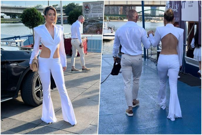 Tea je za promociju izabrala beli seksi kombinezon sa golim leđima, a njen izabranik je nije ispuštao iz ruku dok je silazila sa pristaništa na brod.