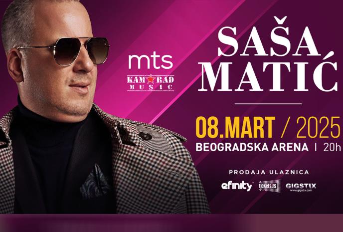 Regionalna muzička zvezda, Saša Matić, objavio je danas da su karte za njegov nestrpljivo očekivani koncert, koji će se održati 8. marta 2025. godine u Beogradskoj Areni, puštene u prodaju. Ovo će biti jedan od najvećih solo koncerata ovog popularnog izvođača u poslednjih nekoliko godina.