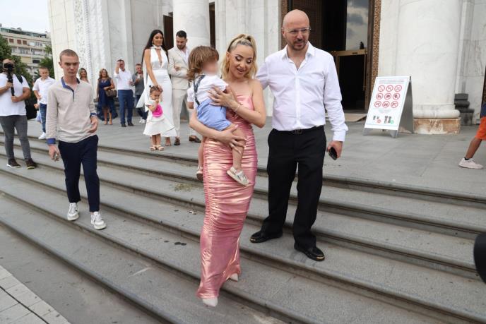 Maja je blistala u dugoj haljini metalik roze boje, a uz to je imala i malu crnu "balensijaga" torbicu. Njen suprug je nosio njihovog naslednika koji je imao svečani stajling.