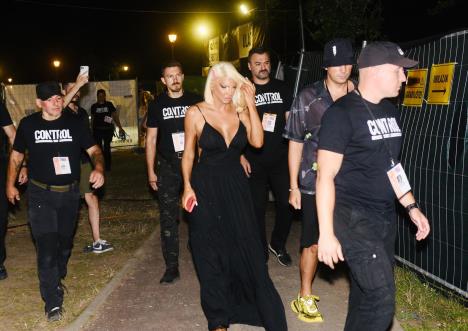 Ona se sa novom paž frizurom u dugoj crnoj haljini sa otvorenim leđima i u pratnji 10 članova obezbeđenja hitrim korakom uputila ka bekstejdžu kako bi se pripremila za večerašnji spektakl, koji će pomeriti sve granice srpskog šou-biznisa.