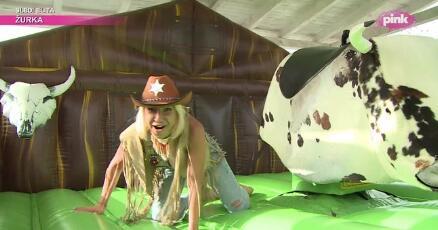 Voditeljka Jovana Jeremić otputovala je sa ekipom emisije "Amidži šou" na Zlatibor, gde se, kao predstavnica ekipe kauboja, oprobala u jahanju bika i - pobedila.