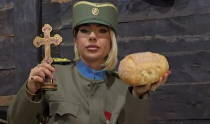 JOVANA JEREMIĆ U UNIFORMI VOJVODE ŽIVOJINA MIŠIĆA! Pozirala sa POGAČOM I KRSTOM, pa poručila: Ja sam BOLJI VOJSKOVOĐA! (VIDEO)