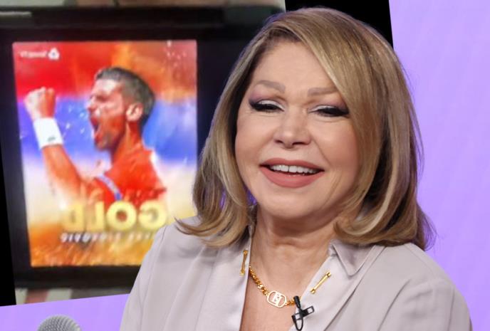 Andrea je plesom sa tabletom u rukama na kom se vidi objava sa Novakom i njegovim olimpijskim zlatom.
