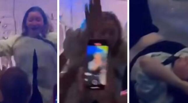 Žena se zaletela i skočila u masu, međutim, ljudi koji su bili ispred bine su se pomerili, te je ona "poljubila patos".