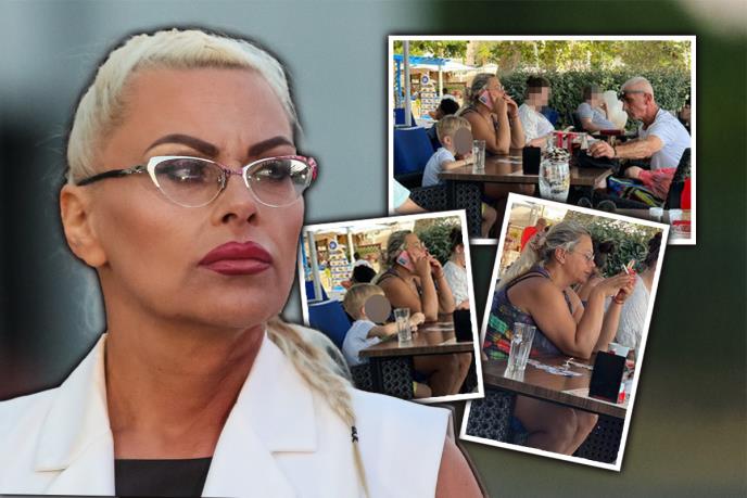 Majku Miljane Kulić naš paparaco uslikao je u Petrovcu na moru, gde je sa mužem Sinišom sedela u jednom kafiću i opuštala se za sve pare.