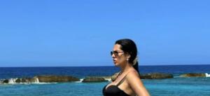 Ona je prvo pozirala u dvodelnom crnom kupaćem kostimu, a onda je pokazala i raj u kom uživa.
