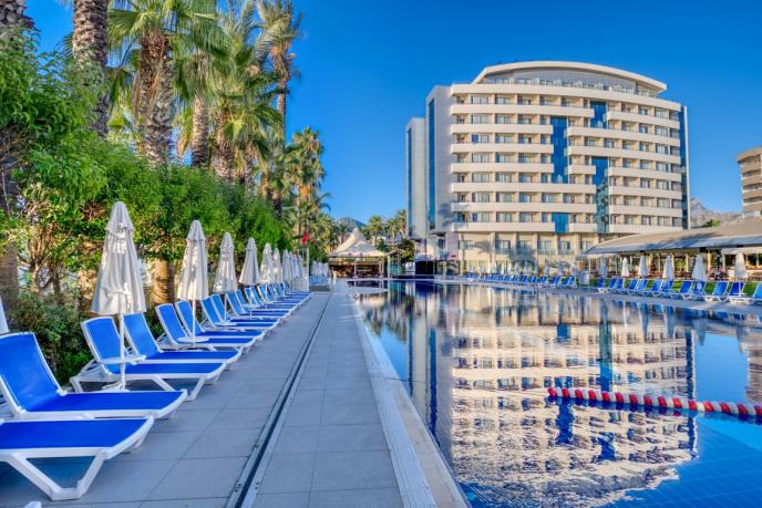 Hotel se nalazi na svojoj privatnoj plaži, izdvojenom delu poznate gradske plaže Konjalti, a od centra gradske vreve Antalije udaljen je oko 6 kilometara. Taman toliko da se možete odmoriti od gužve i buke, ali ne predaleko, ukoliko se te iste buke i gužve uželite u toku odmora. Sa osvrtom na odnos cene i kvaliteta usluge, hotel je odličan izbor i za porodični odmor, za parove bez dece, kao i za mlade. Hotel ima svoju 150 metara dugu šljunkovitu plažu, na kojoj su suncobrani, ležaljke i dušeci na raspolaganju gostima bez doplate.