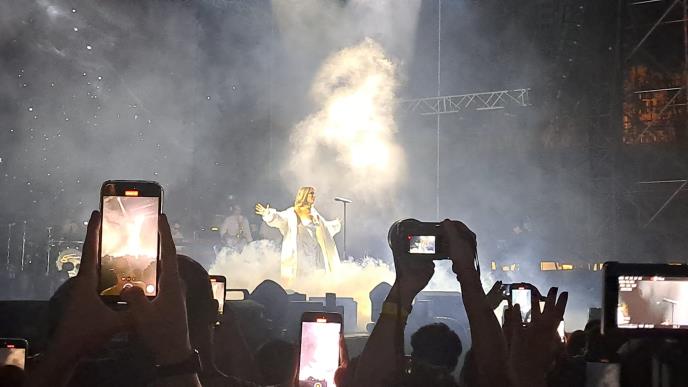 Pevačica je na binu izašla sva u belom i započela koncert pred punim Tašmajdanom, dok su je fanovi pozdravili gromoglasnim aplauzom i uzvicima.