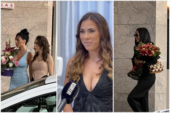 Nešto kasnije stigla je i starleta Tijana Ajfon koja je u rukama nosila veliki buket cveća sa Vesnu, kao i ćerka pevača Topalka, Helena Topalović, koja je s velikim buketom roze ruža ušetala u kliniku.