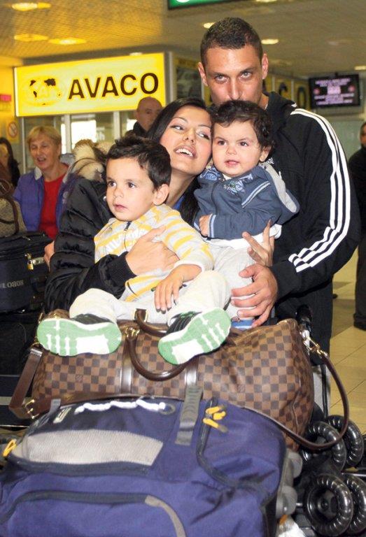 Na aerodrom je stigla s menadžerom Šmrkijem pola sata pre nego što se „Jatova“ letelica iz Dubaija prizemljila. Sve vreme je cupkala i malo-malo gledala na sat. Čak je i nokte počela da gricka... A onda su se pojavili muž i deca! Pritrčala im je, prvo poljubila Dušana, pa snažno zagrlila sinove.