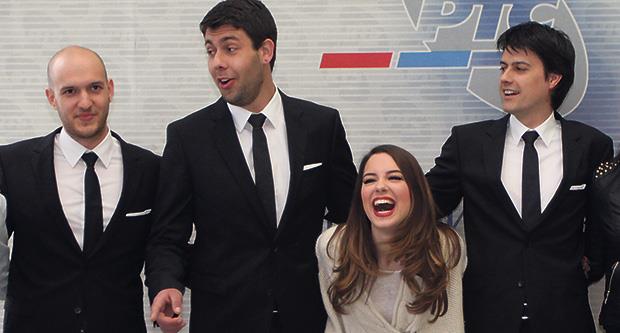 U zgradi RTS juče je predstavljena grupa Klapa s mora, koja će na Evrosongu u Švedskoj predstavljati Hrvatsku s numerom „Mizerija“. Njihove gošće na promociji bile su članice benda Moje 3, a tenor Ante Galić (26) odmah je zapazio Saru Jovanović (19).