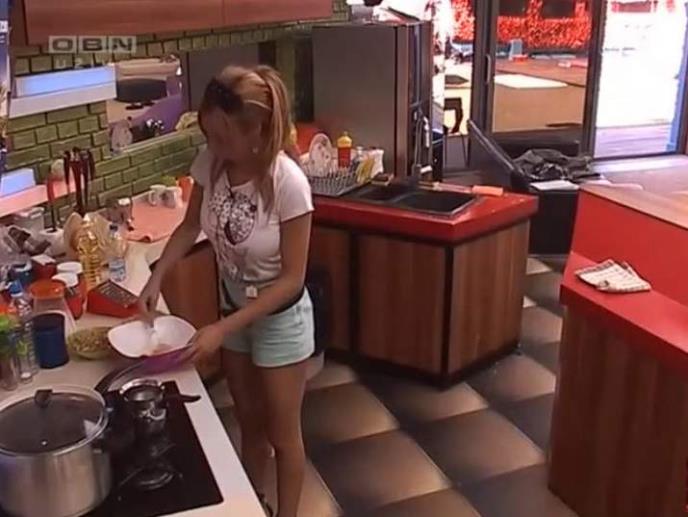 Atraktivna starleta je ušla u kuhinju u kući Velikog brata i prvo izlupala jaja, a potom ih izmutila, stavila smesu u tiganj i ispekla jaja