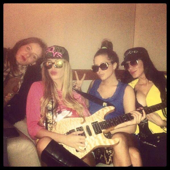 Naime, ona se latila gitare u društvu i zasvirala. U društvu je još tri devojke, ali ko zna, možda su to njene buduće saradnice u bendu.