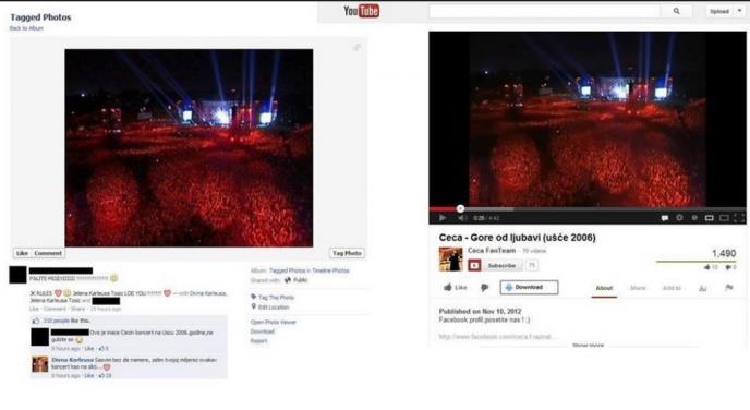 Karleuša ima uporne i lojalne fanove, a jedan od njih je otišao toliko daleko da je na svoj privatni nalog postavio, umesto fotografije sa Jeleninog koncerta, "printskrin" sa Cecinog koncerta na Ušću 2006. godine
