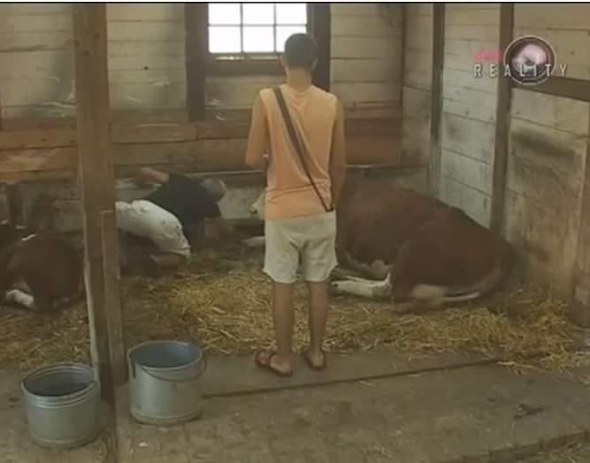 Era Ojdanić vodio je borbu sa kokoškama u štali dok je gazda Aki celu scenu samo posmatrao i davao mu instrukcije.