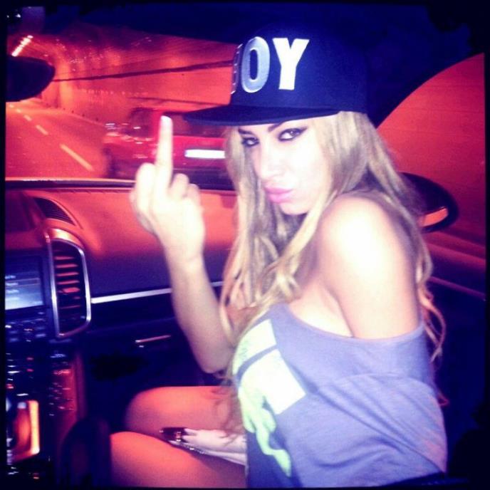 Na njoj, iz automobila "časti" srednjim prstom. Kome je bilo upućeno ne znamo, ali verovatno postoji razlog za ovo nimalo damsko ponašanje.