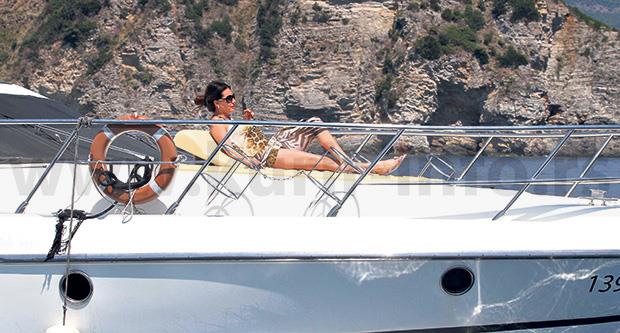 A kad je već na jahti, iskoristila je priliku i da se malo osunča daleko od znatiželjnih pogleda. Ali nama nije uspela da pobegne! Društvo s kojim je provela prijatne trenutke i njena deca nastavili su da uživaju u posluženju, a ona je otišla na palubu u providnoj letnjoj haljini ispod koje se nazirao bikini i seksi obline. Prava vrelina nastala je kad su njene zgodne noge sevnule u prvom planu.