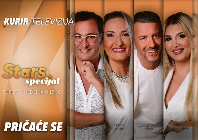 Od ovog vikenda, umesto jedne, gledaćete dve emisije Stars specijala, jednog od vaših omiljenih formata Kurir televizije. Za vas ćemo i subotom ii nedeljom pripremati najinteresantnije i najintrigantnije priče iz sveta javnih ličnosti. Dve premijerne emisije, obe u terminu od 15h. Naši voditelji nastavljaju da uzburkavaju estradu i izmeštaju javne ličnosti iz zone komfora. Danas su u studiju Goran Jovanović, Ivan Kleut, Olivija Jontić i Ivan Gajić.