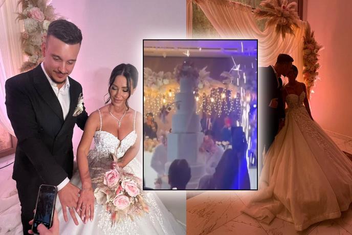 TORTA DO PLAFONA Detalji gala svadbe Aleksandre Bursać i 10 godina mlađeg pevača! isplivao snimak sa venčanja! Mlada se presvukla u minić
