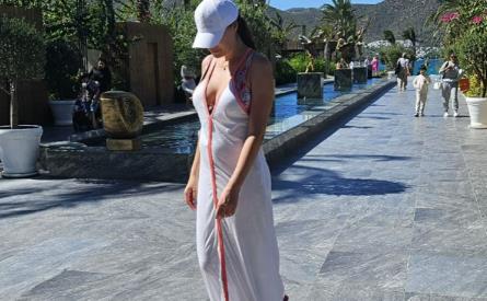 Sanja je prvo pozirala u haljini za plažu koja je bila sa dubokim dekolteom, a potom je pozirala u kupaćem kostimu i svi joj kažu da odlično izgleda nekoliko meseci nakon porođaja.