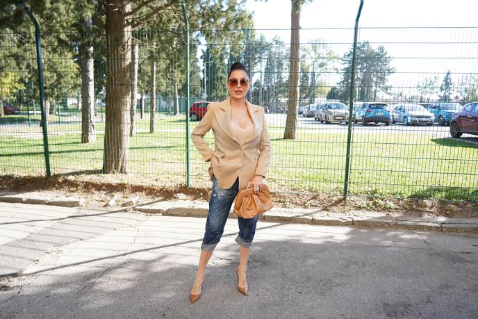 Za tobru za koju piše da je veganski proizvod, što znači da nije od prave kože, u krem boji, koju je ukombinovala uz sve je iskeširala oko 300 evra, dok farmerke poznatog modnog brenda koštaju oko 500 evra.