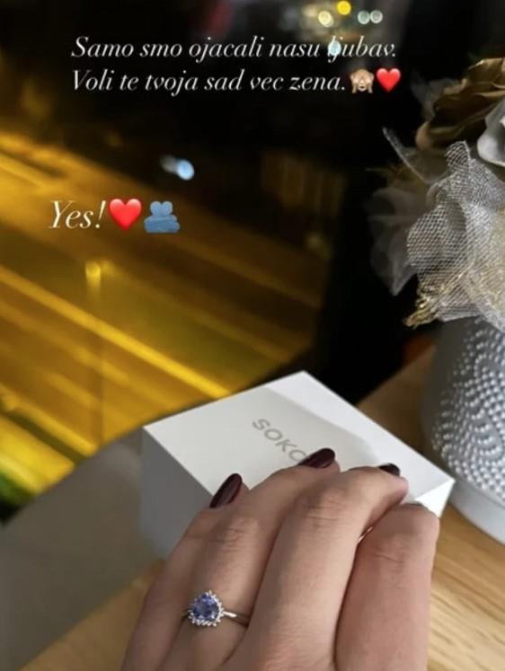 Pevačica je na svom Instagram profilu objavljivala momente sa proslave, a onda se pohvalila i vereničkim prstenom.