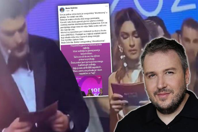 - Pobednička pesma na festivalu je bila najbolja. Izbor voditeljka na glavnoj sceni ja katastrofalan, Tačno se vidi da ovo nisu njihove primarne profesije. Šteta, makar javni servis je imao mnogo kvalitetnijih voditelja. Gde je neko od tih 800 zaposlenih. Sve u svemu sve pohvale jeni nisam raspoložen za "hejt", dopisao je Božo Dobriša.