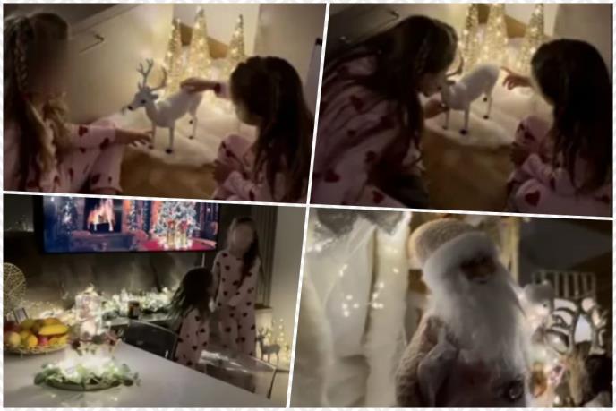 BAJKOVIT PRIZOR U DOMU PEVAČICE! Ćerke nikad srećnije, luksuzni stran ceo u svetlucavim ukrasima, irvacima, jelkicama, a tu je i ogroman Deda Mraz! (FOTO)