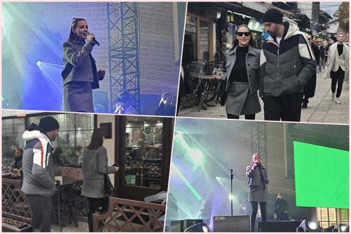 Nakon probe Aleksandru , njenog supruga Filipa i ostatak ekipe ispratili smo do Baščaršije gde je ekipa otišla na ručak, posle čega ih očekuje odlazak u hotel i pripreme za spektakl.