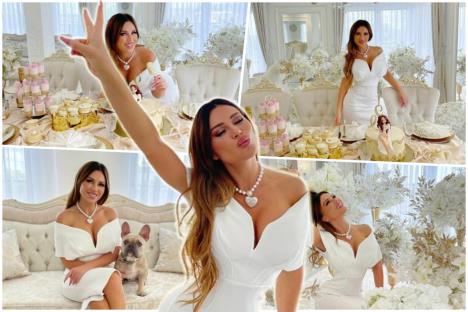 Stan ima ogromnu terasu, dominiraju bele boje, kuhinja je već gotova, ugradni plakari sa svetlom su na mestu, a tu je i kamin, sijaset kristalnih lustera i svetiljki, ali i ogledala od poda do plafona u skoro svakoj sobi.