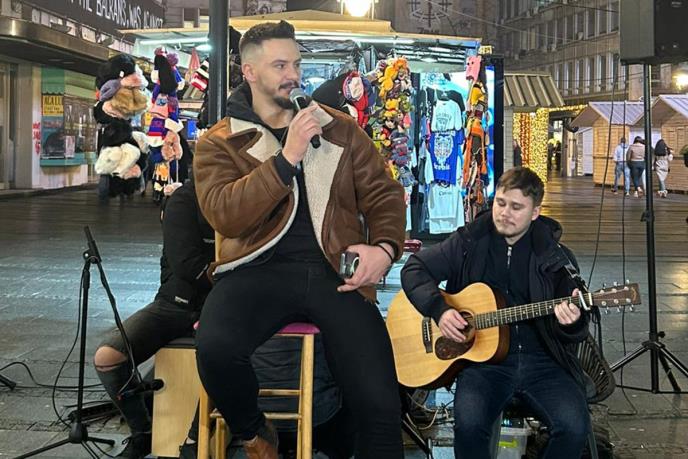 PevačEmir Đulovićnastavio je svoju humanitarnu akciju, pa je nakon Knez Mihailove, zapevao i u Novom Sadu.