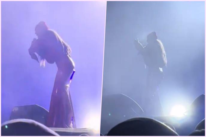 Naime, pevačica je urlala iz sveg glasa na mikrofon i pozivala momka iz publike da se popne na binu.