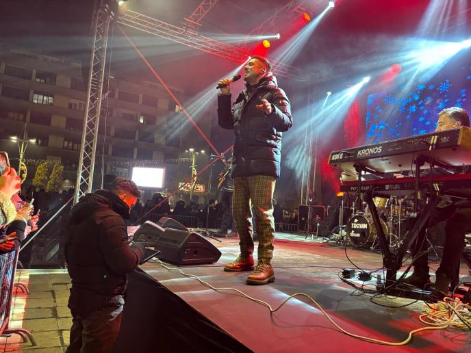 Na prepunom Gradskom trgu u Užicu u toku je koncert pevača Nikole Rokvića.