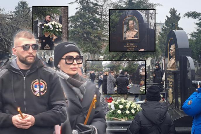 CECA SA VELJKOM I ANASTASIJOM STIGLA NA POMEN ARKANU: Veliki venac i muk na Novom groblju, a tu je i Željkova ćerka iz Belgije (FOTO)